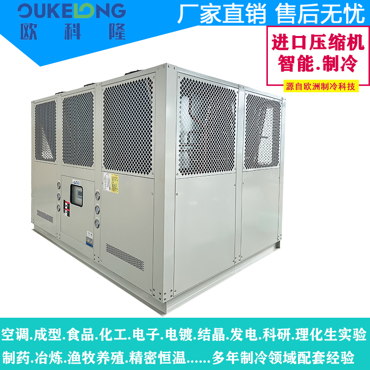歐科隆制冷60HP風冷式冷水機型號是:OKL-60AT,是一款工業(yè)級大功率制冷設備,專為連續(xù)高負荷生產環(huán)境設計。該機型采用創(chuàng)新風冷散熱架構,突破性實現60匹(約180kW)制冷能力,無需配置冷卻塔,大幅降低用水成本和安裝復雜度。