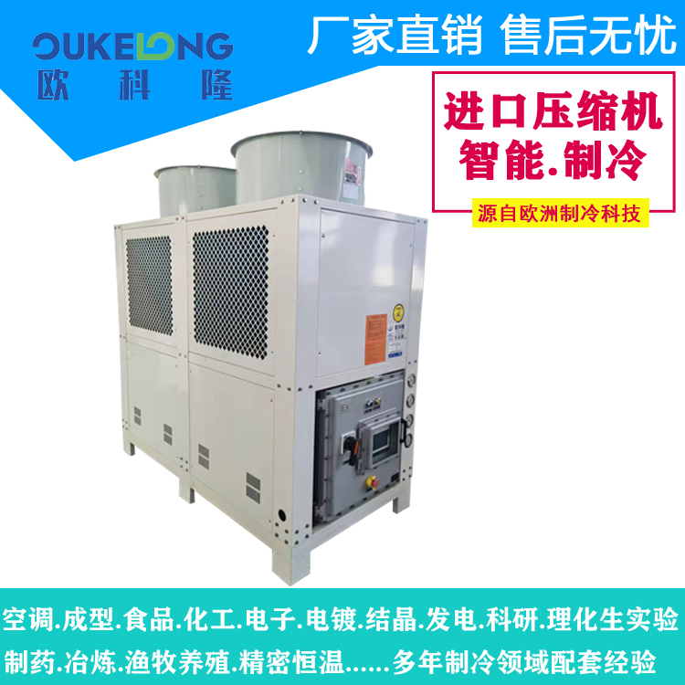風(fēng)冷箱式防爆冷水機(jī),是歐科隆制冷打開市場(chǎng)的拳頭產(chǎn)品,歐科隆制冷擁有廣泛的防爆冷水機(jī)配套經(jīng)營(yíng),包括臭氧發(fā)生器,甲烷發(fā)電,化工化纖,石油天然氣,新型環(huán)保行業(yè)等,歐科隆防爆冷水機(jī)采用隔爆、增安、本安、正壓、充油、充砂、無(wú)火花、澆封和氣密等多種防爆方式,使機(jī)組可以在易燃易爆場(chǎng)合使用。